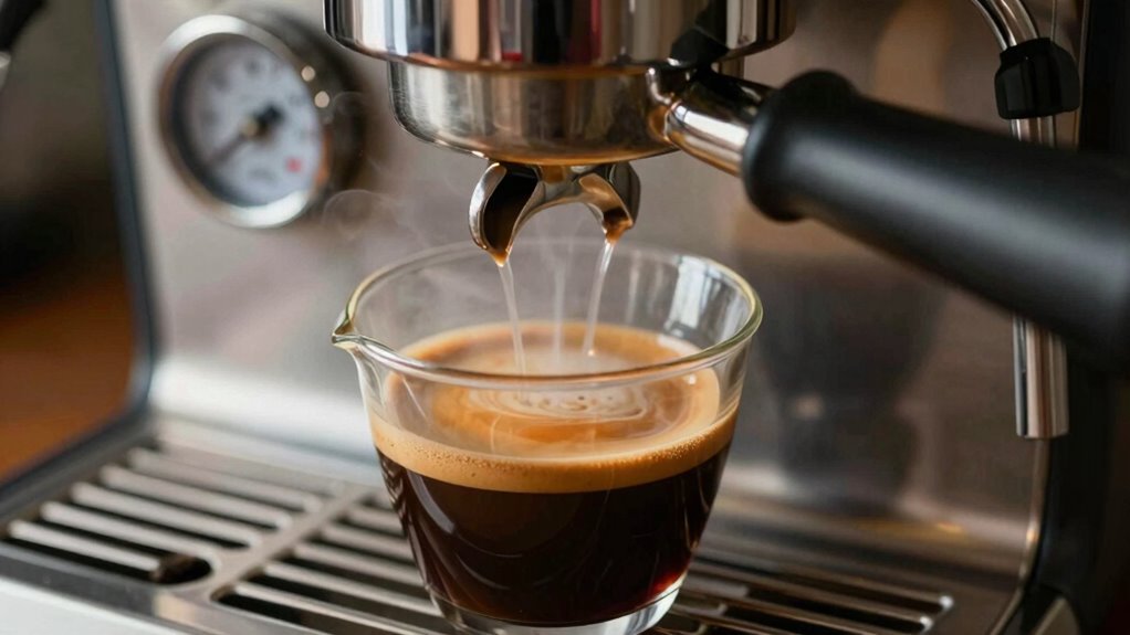 When you brew espresso, the water temperature plays an essential role in extraction. If the temperature’s too low, you won’t extract enough oils and flavors, leaving your shot weak and sour. On the other hand, if it’s too high, you risk over-extraction, leading to bitterness. Finding the right balance is key for achieving that rich espresso flavor you crave. Typically, a temperature range of 190°F to 205°F works best. This range promotes ideal extraction balance, allowing the coffee’s sweet, fruity notes to shine without overwhelming bitterness. Adjusting your water temperature can make a noticeable difference in your brew, transforming an average cup into something extraordinary. Take the time to get it right, and your taste buds will thank you!