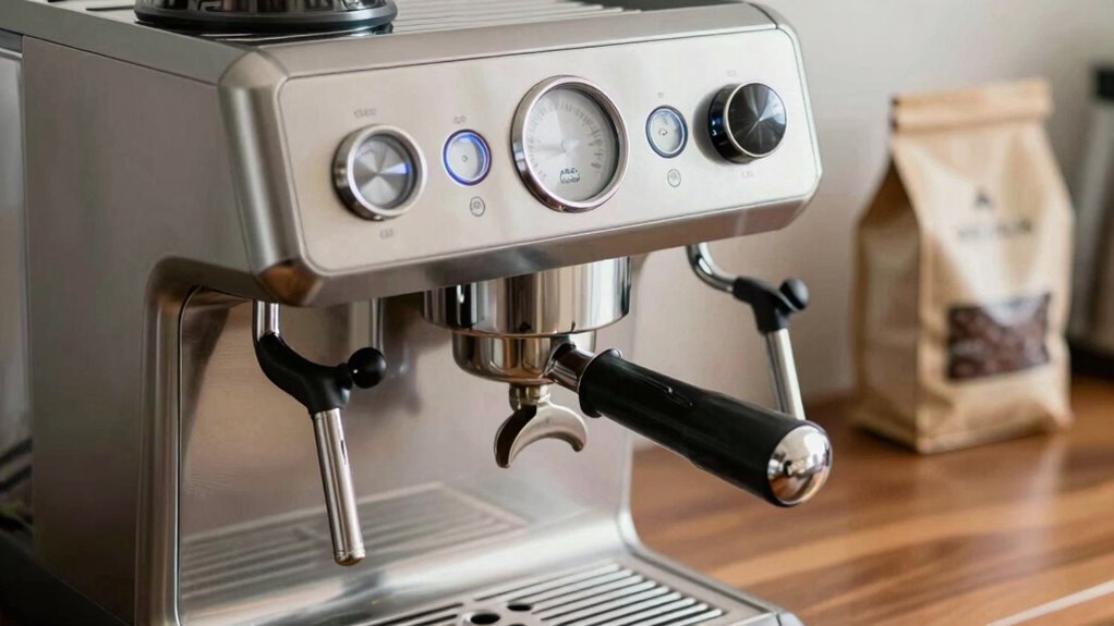 While many factors influence the quality of your espresso, pressure plays a crucial role in extracting those rich flavors. The ideal pressure for espresso extraction is typically around 9 bars, but pressure variations can greatly impact your brew. When the pressure’s too low, you’ll end up with a watery taste and under-extracted coffee. Conversely, excessive pressure can lead to over-extraction, resulting in bitterness. To achieve that perfect balance, it’s important to monitor your machine’s pressure during brewing. A consistent pressure not only enhances flavor but also guarantees a smooth crema. By understanding how pressure affects your espresso, you can adjust your technique to craft a cup that truly satisfies your palate.
