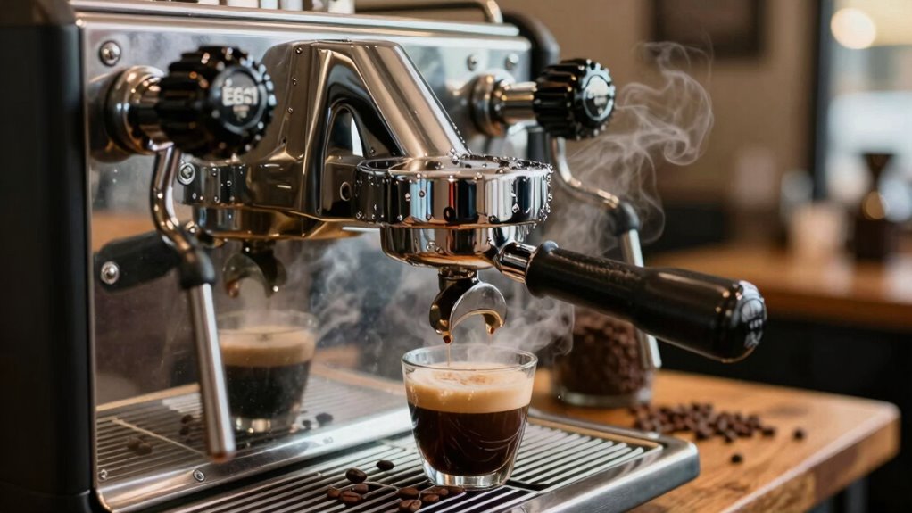 Temperature stability plays an essential role in espresso extraction. When you maintain consistent temperature control during brewing, you guarantee that water extracts flavors evenly from the coffee grounds. This leads to extraction consistency, enhancing the overall taste and aroma of your espresso. If temperatures fluctuate, you might end up with bitter or sour notes, negatively impacting your shot. So, keeping that temperature stable is key to achieving a delicious cup of espresso.