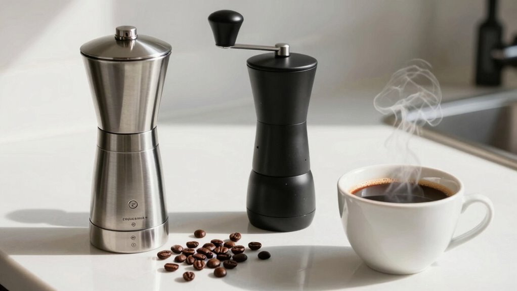 When choosing between a burr grinder and a blade grinder, consider your coffee routine’s flavor and consistency. Burr grinders deliver a uniform grind, preserving aroma and improving extraction, while blade grinders create uneven particles that can affect your brew. If you value quality and are willing to invest, a burr grinder offers long-term benefits. Plus, if convenience and speed are your priorities, a blade grinder might suit you better. Explore the nuances to find your perfect match.