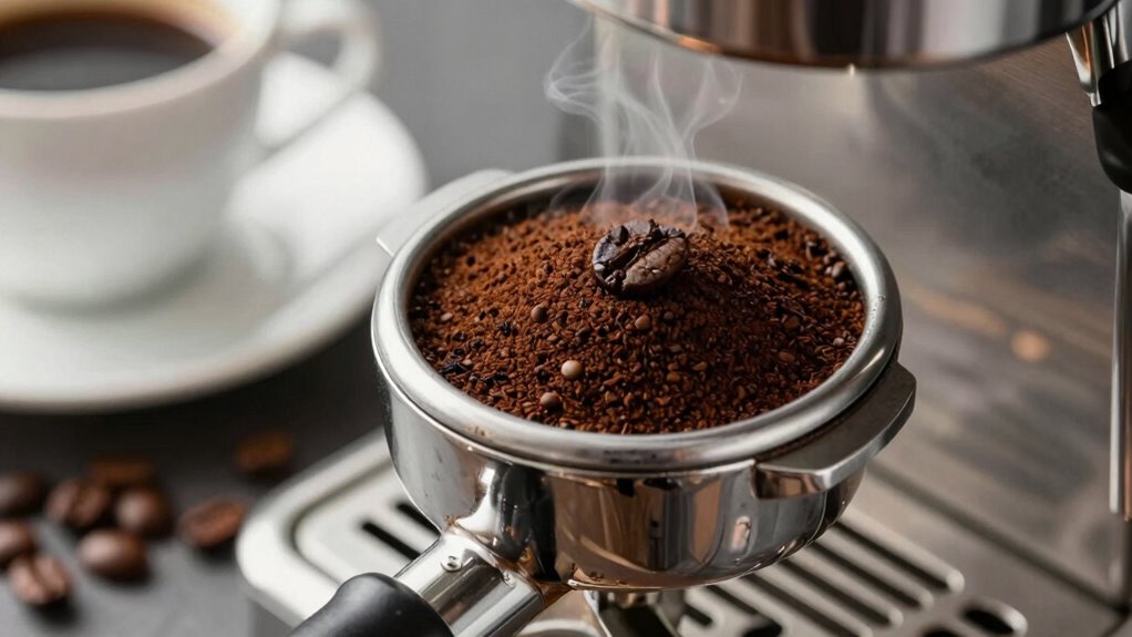 Grind distribution is essential for achieving that perfect espresso shot. When you pay attention to how evenly you distribute your coffee grounds, you enhance coffee extraction, ensuring that every particle contributes to the flavor balance. An inconsistent grind size can lead to uneven brewing, resulting in over-extraction or under-extraction. This imbalance affects espresso consistency, making your shots unpredictable. By focusing on brew uniformity, you minimize channeling, which can cause undesirable tastes in your espresso. Mastering your grind distribution also allows you to refine your brewing techniques, letting you explore new flavors and textures. Simply put, better grind distribution can elevate your espresso experience, making every cup a delightful treat rather than a gamble.