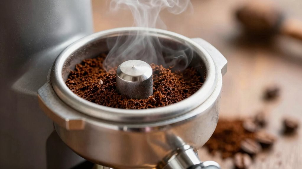 Have you ever wondered how a clean grinder could spoil your perfect cup of coffee? It might seem counterintuitive, but improper grinder maintenance can lead to grind size inconsistencies. When you clean your grinder, you’re removing old coffee oils and residues that might have contributed to your ideal flavor profile. If you don’t recalibrate your grinder afterward, you could end up with a grind size that’s too fine or too coarse. This inconsistency can affect extraction, resulting in a brew that’s either bitter or weak. Always remember, after cleaning, double-check your grind settings to verify you’re getting the most out of your beans. A little attention goes a long way in preserving your coffee’s integrity. Additionally, understanding grind size consistency is crucial for achieving the perfect extraction and flavor.
