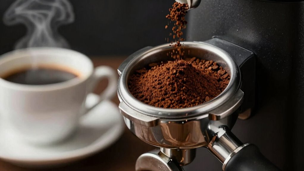 Different grind sizes can dramatically affect retention. A coarse grind may leave more coffee in the grinder, dulling flavor clarity, while a fine grind often enhances grind consistency and maximizes extraction. Imagine brewing a rich, aromatic cup that’s full of flavor versus a weak, muddled brew—you’ll feel the difference. By adjusting grind sizes, you can reveal the potential of your beans, ensuring each sip delivers the vibrant taste you crave.