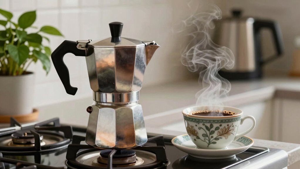 You should replace your moka pot every 5 to 10 years, depending on how often you use it and how well you maintain it. Regular moka pot maintenance, like cleaning and checking for wear, can extend its life. If you notice any cracks or rust, it’s time for a new one. Sticking to proper brewing techniques also helps guarantee your coffee tastes great, so keep an eye on its condition!