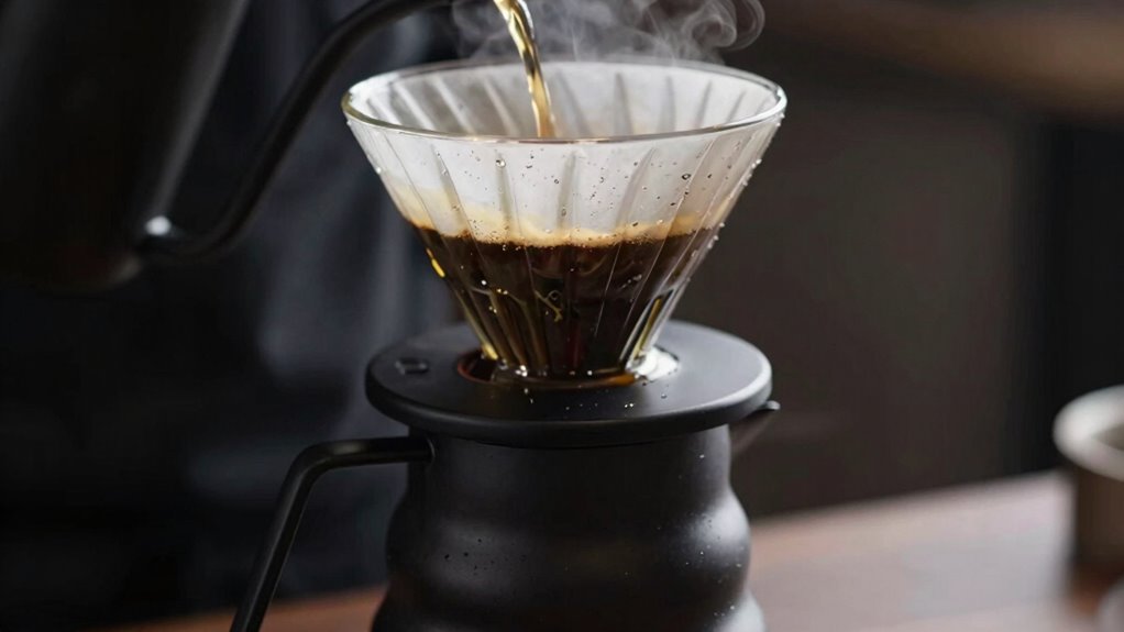 Have you ever wondered how coffee enthusiasts achieve the perfect balance between drip brewing and pour-over methods? The Switch Dripper Hybrid Method combines the best of both worlds, allowing you to customize your brewing process. This method offers greater control over extraction, which directly impacts flavor profiles, making your coffee more vibrant and nuanced. It also enhances brewing consistency, so every cup tastes just right. By switching between drip and pour-over techniques within a single brew, you can experiment with different extraction times and flow rates. This flexibility lets you fine-tune your coffee’s taste, aroma, and body. Additionally, many coffee lovers appreciate the DIY beauty secrets involved in brewing, as it allows them to craft unique experiences tailored to their senses. The result is a versatile brewing method that adapts to your preferences while maintaining reliable, repeatable results. Additionally, this method exemplifies exploring new frontiers in coffee brewing, encouraging enthusiasts to innovate and discover unique flavors.