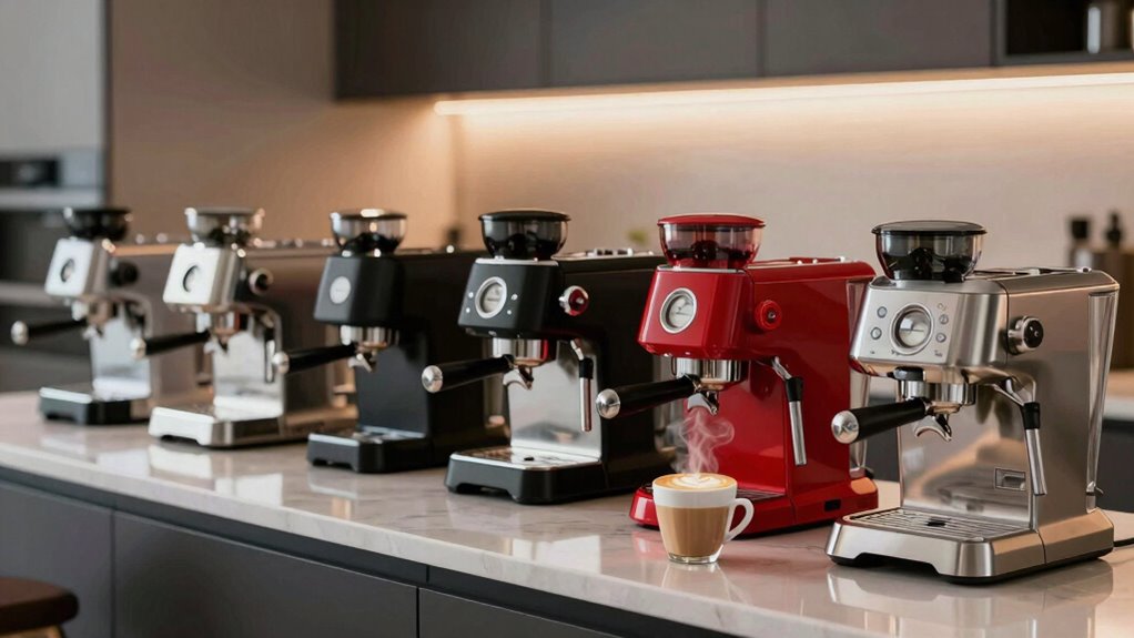 If you’re after the best espresso machines for lattes in 2026, I’ve got a great list for you. From options with adjustable milk frothers to powerful built-in grinders, these machines make café-quality lattes at home. Look for features like 20-bar pumps, temp control, and easy cleaning. I’ve covered everything from compact designs to professional systems. Trust me, there’s so much more to explore that’ll help you find your perfect match.