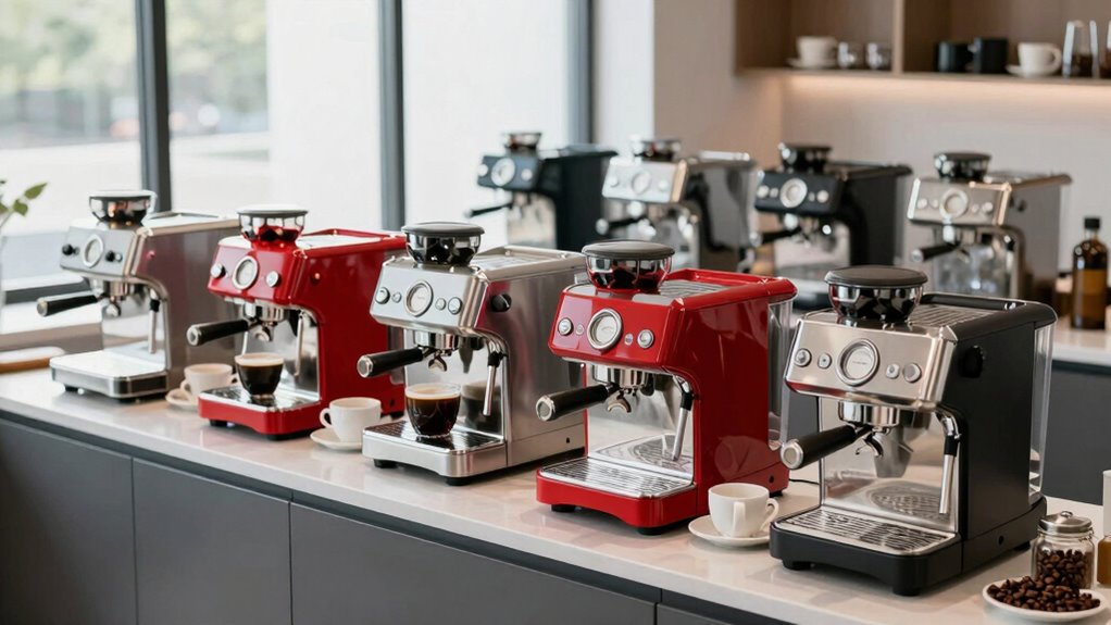 When choosing an espresso machine for the office, I think it’s essential to take into account brewing capacity, especially if we’re all big coffee drinkers. Space-saving designs can make a huge difference in our limited kitchen area, too. Plus, ease of use and maintenance will keep everyone happy and caffeinated without a hassle.