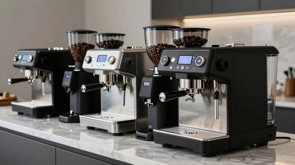 Imagine a ninja whispering secrets—those machines are surprisingly quiet. Many top models now feature noise reduction technology, making your morning espresso routine almost silent. I find the Breville Barista Express and DeLonghi La Specialista particularly hush-hush. They brew without waking the neighborhood, allowing you to enjoy your caffeine fix peacefully. So yes, some machines practically tiptoe through your kitchen, turning an otherwise loud ritual into a serene experience.