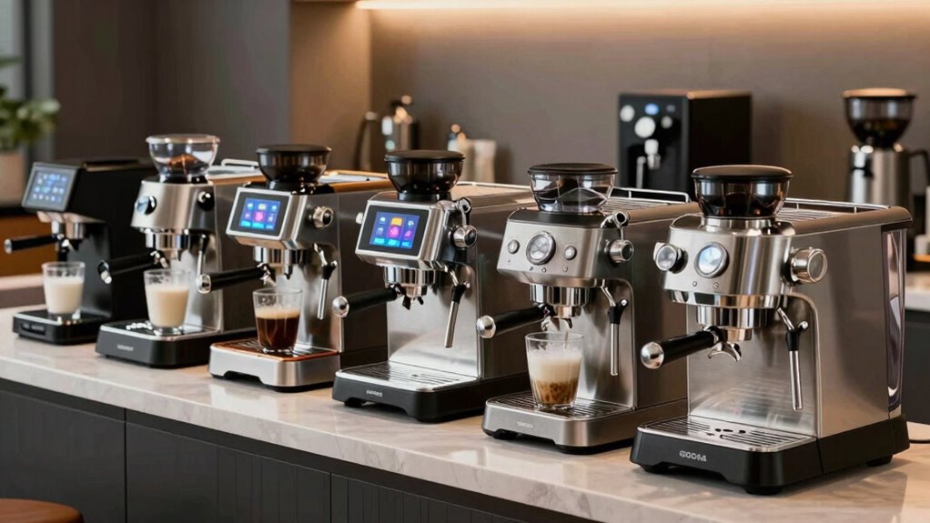 If you’re looking for the 15 best-rated espresso machines with milk frothers in 2026, I’ve got you covered. These models stand out for their versatile brewing options, precise temperature control, and reliable steam wands that create perfect microfoam. From compact pod-based options to professional-grade machines with customizable settings, there’s something for every coffee lover. Keep exploring, and you’ll discover detailed insights that help you choose the perfect machine for your favorite drinks.