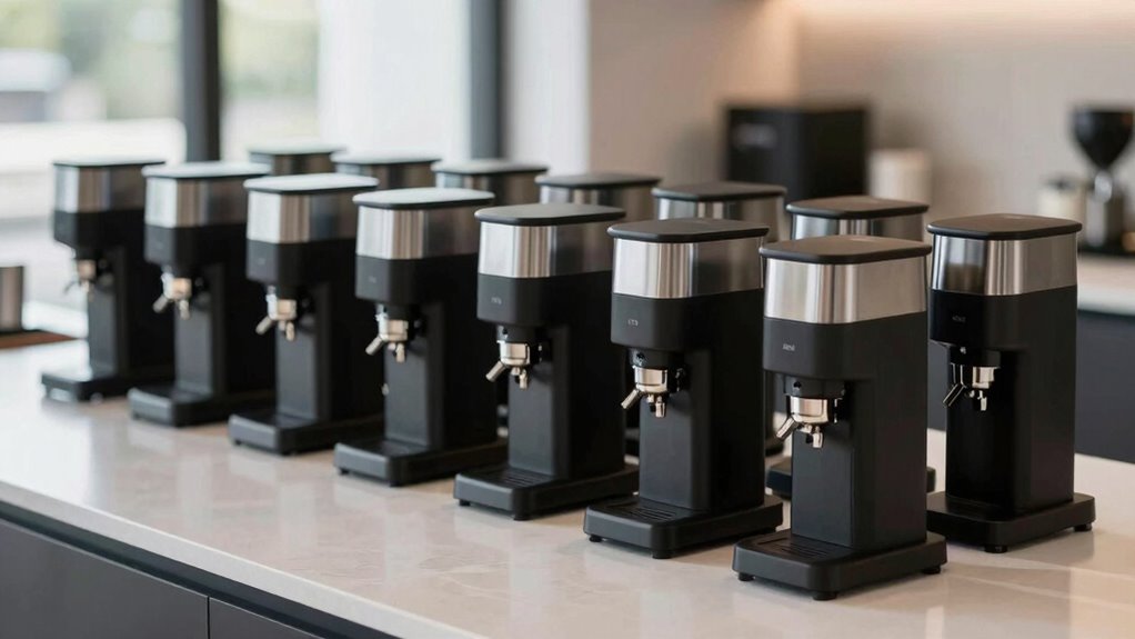 Low retention levels are key to maintaining the freshness and quality of your espresso. When grinders retain less than 0.1 grams, your coffee stays fresher, and waste is minimized. High retention can cause stale grounds to mix with new beans, negatively impacting flavor. Features like static reduction, plasma generators, or anti-static coatings help prevent coffee from clinging to grinder parts. Designs with blow-out funnels or bellow systems promote nearly complete emptying of grounds, further reducing residual retention. Consistently low retention improves dosing accuracy, ensuring each shot is fresh and well-extracted. For single dose espresso brewing, this is especially important. Choosing a grinder with low retention means better flavor, less waste, and a more precise, enjoyable espresso experience.